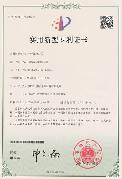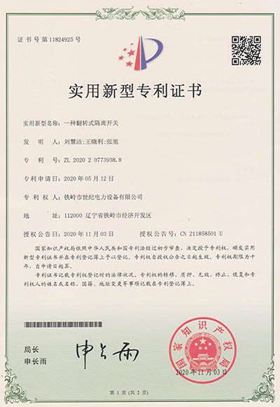 實(shí)用新型專利證書(shū)