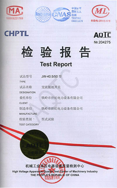交流接地開(kāi)關(guān)檢驗(yàn)報(bào)告