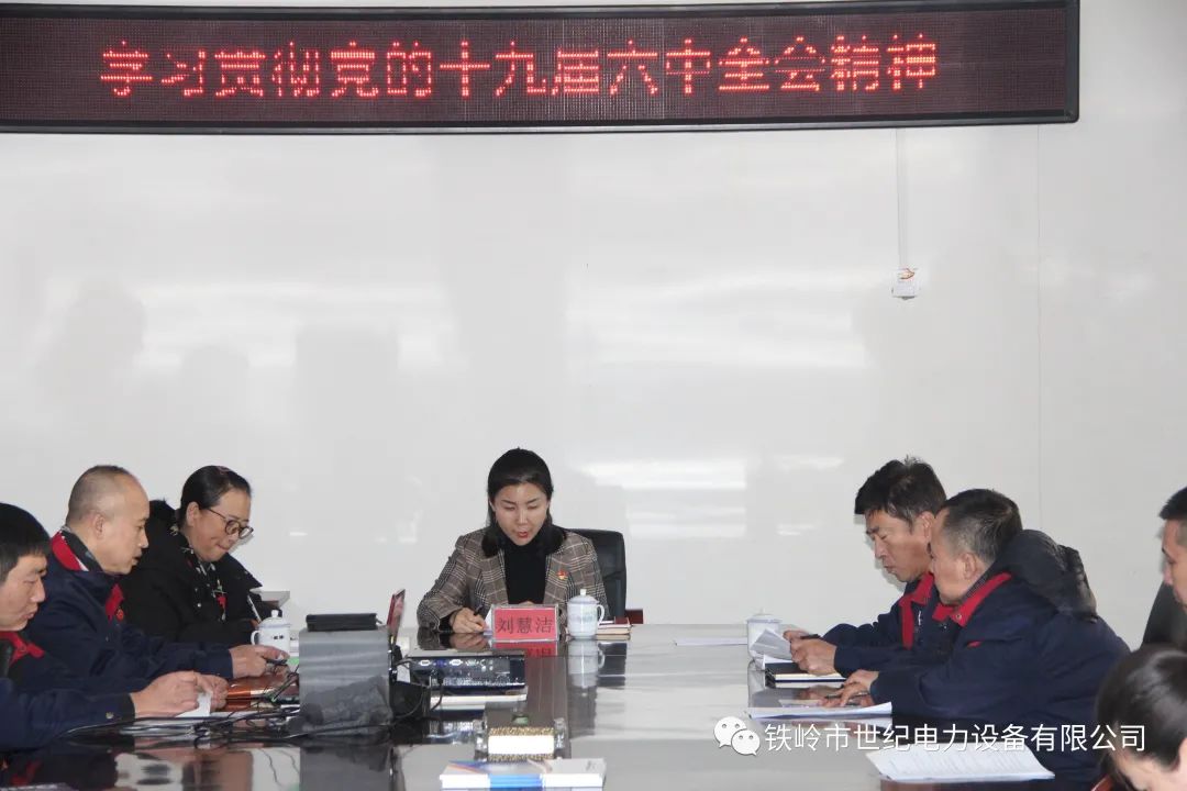 12月11日下午,鐵嶺市世紀(jì)電力設(shè)備有限公司黨支部在二樓會議室召開專題會議,傳達(dá)學(xué)習(xí)貫徹黨的十九屆六中全會精神,公司黨支部書記、總經(jīng)理劉慧潔主持會議并講話,公司黨支部副書記閆紅煒、部分黨員代表出席會議。