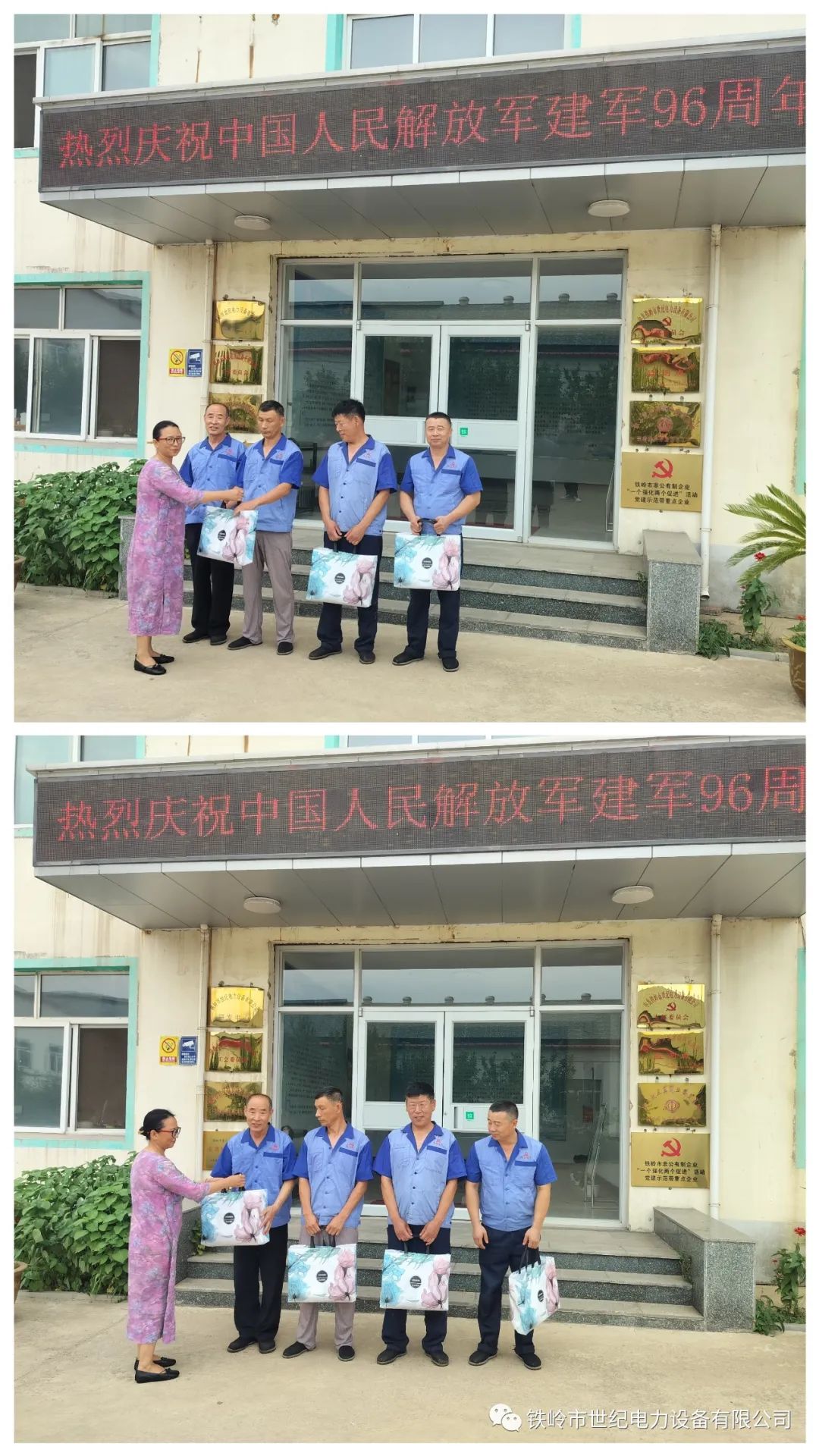 在“八一”建軍節(jié)來臨之際,為發(fā)揚優(yōu)良傳統(tǒng),傳承紅色基因。8月1日鐵嶺市世紀(jì)電力設(shè)備有限公司開展了“八一暖心慰問,情系退伍軍人”慰問活動,把黨和公司的關(guān)懷送到了退伍軍人職工的心中。